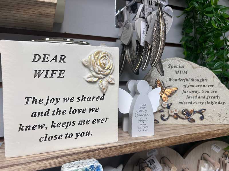 Blossom and Bows stock a wide range of memorial products for your loved ones graveside or memorable garden. We sell many types of graveside memorial such as ornaments, plagues, flower vases and pots, artificial arrangements, wind chimes as well as pet memorial.